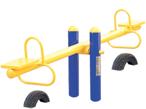 鍛煉方法:分坐于蹺蹺板兩端座板上,兩手握把手進(jìn)行運(yùn)動(dòng)。